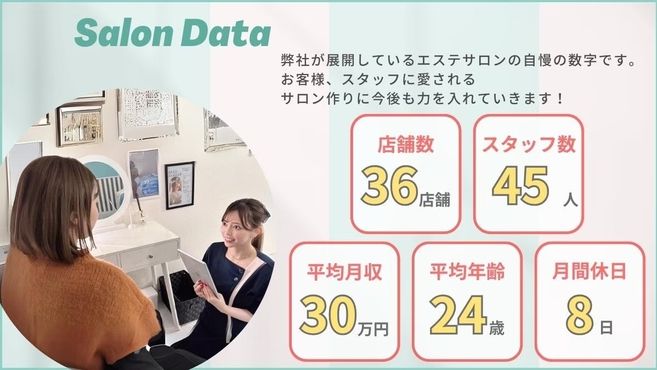 エステの施術をしたことがないという方でも、無駄を省いた研修で未経験スタートでもすぐに現場デビューができるようサポートしております♪