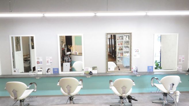ティファニーブルーと白を基調にした空間に、図書ルーム・キッズルーム・エステサロンを併設した当店は、「美容と癒しをトータルで楽しめる場所」として幅広い世代のお客様から支持されています。これからも髪・肌・心を整えることで、お客様にとって特別な時間をお届けできるよう、スタッフ一同心を込めてお迎えいたします。