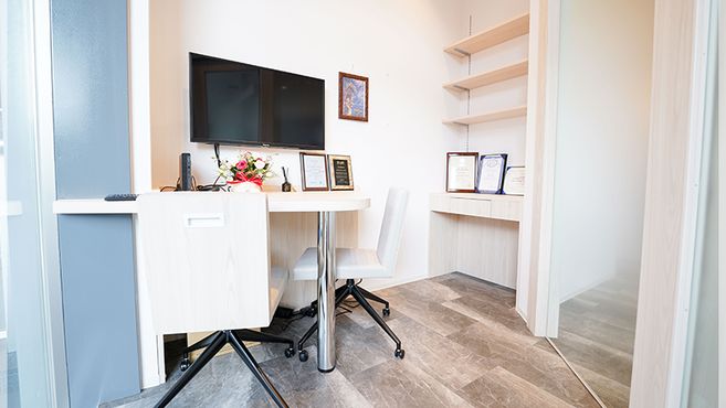 閉鎖的な空間が苦手な方も安心してお過ごしいただけるプライバシーの保たれた半個室タイプの診療室です。
