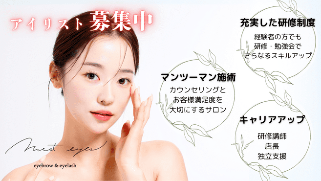 未経験歓迎 / アイリスト / 研修制度充実 / インセンティブ制度 / まつエクなし / まつげパーマ / 交通費支給 / 大手サロン