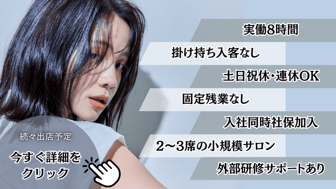大型店も良いけれど…お客さま一人ひとりとしっかり関わりながら丁寧な仕事をしたい方、個室型の施術スタイルに興味がある方はぜひ♪応募後の見学大歓迎です☆