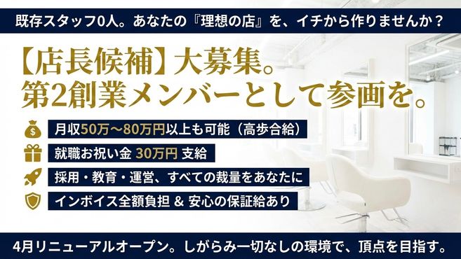 経営・マネジメント:年商5,000万超を支える裏側(数値管理や単価アップ戦略)をオーナーから直接学べる環境です。