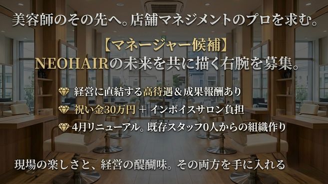 共通しているのは、**「現状に満足せず、より良い環境を求めてneohairを選んだ」**ということ。それぞれの「なりたい姿」を尊重し、それを実現するための集客と環境をサロンが全力で用意します。