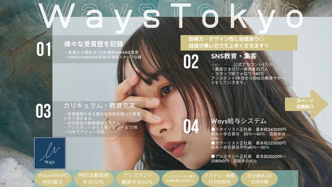 技術を取得した後は実際にお客様に入らないと学べない!やらない不安ではなくまずはやってみる!をコンセプトにしているのがWaysTOKYOです!