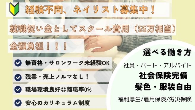 未経験の場合は、ネイルスクールに通うところから支援させていただきます!