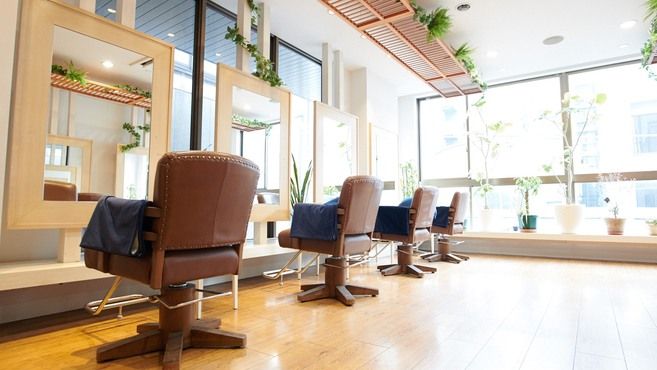 窓から光がたくさん入る2階店舗です。緑とナチュラルを基調とした落ち着いた暖かい雰囲気の店内です。20代女性スタッフ4名が活躍しており、お客様とも仲良くお話しして楽しい雰囲気があります。