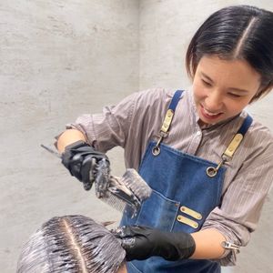 お客様も同世代の落ち着いた方が多く、施術は白髪染めが中心。