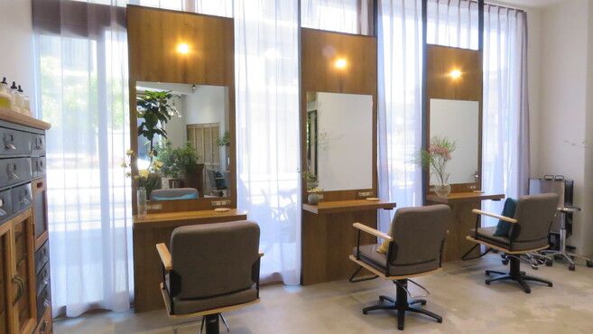 - 四季折々の生花と心地よいBGMの中、一人ひとりにあった美髪ケアとスタイルをご提案する大人女子のためのヘアサロン