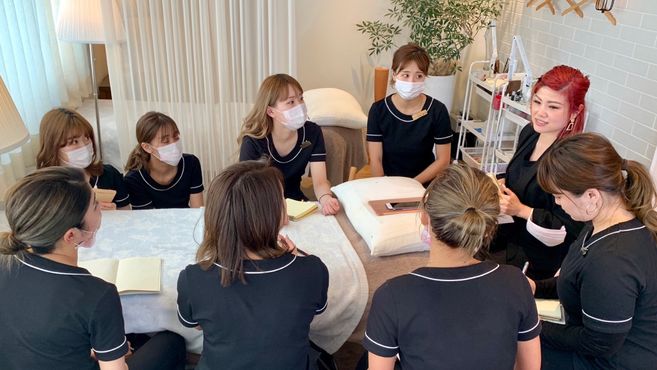 サロンにご来店のお客様はとても優しい方が多く、流行のデザインやボリュームのある目元を好まれる方も多いため、店長による技術指導で一緒に技術向上を目指しています。