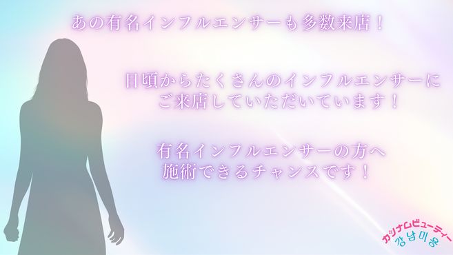 - 韓国美容の最先端技術を体感できる当サロンは、美しさを追求する全てのお客様に特別な時間を提供します。トレンドを取り入れた最新の施術や高品質の韓国コスメを揃え、肌の内側から輝きを引き出すケアを実現。清潔感あふれるモダンな空間とリラックスできる雰囲気が特徴で、お客様一人ひとりのニーズに合わせたカスタマイズ施術が好評です。「最新」「安心」「信頼」をモットーに、美容を通じてお客様の日常をより華やかに彩ります。韓国美容が初めての方から美容にこだわりのある方まで、ぜひ一度ご応募 ください!