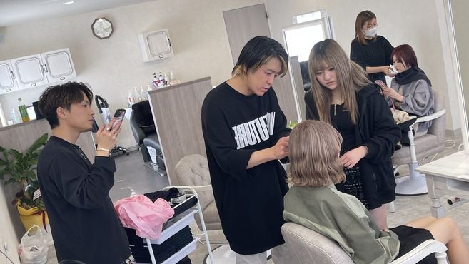 店舗の立ち上げから携わることができ、店舗運営も信頼して任せてもらえるので“自分たちの店づくり”ができ、とてもやりがいがあります。キャリアアップ制度もあるので、自分のブランドやお店をつくる目標に向けて着実に歩んでます。プレーヤーとして指名数を伸ばす仕組みや、技術者として新薬剤に触れられる機会など、一人ひとりに合わせた教育制度が充実。僕は美容師力を上げながら「経営者」としての知識やノウハウを勉強中。