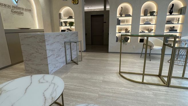 内装はブティックホテルをイメージしたラグジュアリーな空間。落ち着いた雰囲気の中で、ゆったりと施術に集中できます。医療提携サロンとして信頼性も高く、お客さまにも安心して通っていただける環境です♪