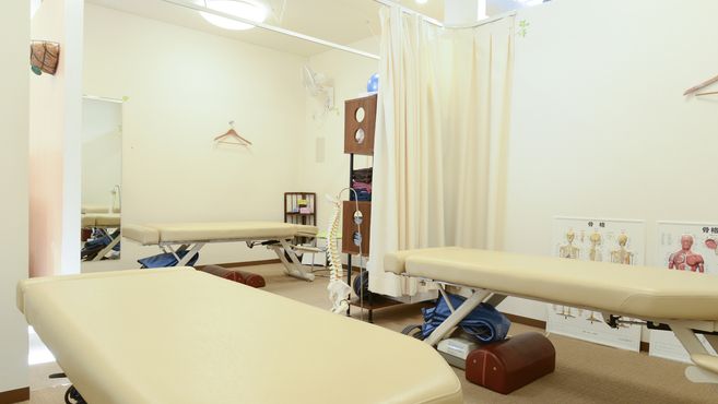 それぞれのブースがカーテンで区切られています。
