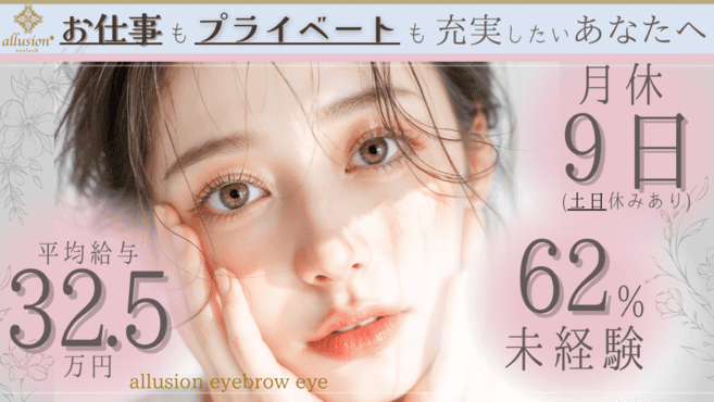 シフトの自由度が高く、土日が月2回とれて連休も取れる為、旅行などの予定が立てやすく、プライベートがとても充実しています!給与に関しても他サロンのアイリストの友人の話を聞くと、アリュージョンはかなり高いです!