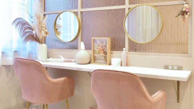 ピンク×ベージュカラーの店内にはかわいいインテリア♪全席半個室のまるでカフェのようなおしゃれなプライベート空間をつくりました。キレイになる時間を居心地の良く過ごせると好評です。