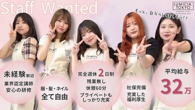 ・事業拡大を見据えているので、より有名なアイリストになれるチャンス!アイビューティー業界を変えようと本気で考えています!