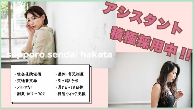 スタッフが働きやすい環境で、話題のカラー剤などの最新の物を常に取り入れているので、【集客力】には絶対的な自信があります。他のサロンで顧客がいなかった方も即入客可能で、安心して働ける環境をご用意します。