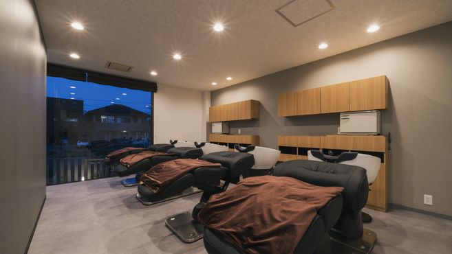 寝心地の良いフルフラットのシャンプー台が4台あります。