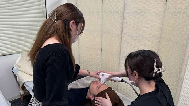 モデルさんに実際に施術をしながら、お客様のお悩みご要望に合わせてアドバイスができるよう、
