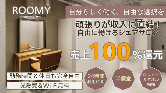 ROOMYは「美容師がもっと自由に、自分らしく働ける場所をつくりたい」という想いから生まれたシェアサロンです。