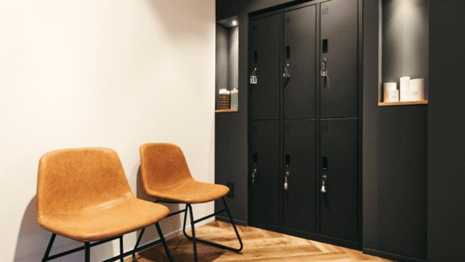 共用部分にはロッカーや休憩スペースも完備。タオルや光熱費はすべて利用料金に含まれているため、煩わしいコスト管理の手間もありません。