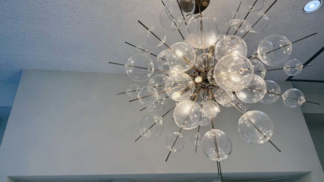 シャボン玉のように輝くシャンデリアがきらめき、