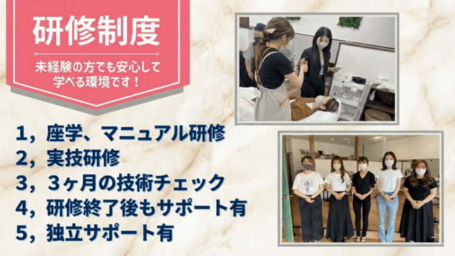 未経験でも経験が浅くても、「じっくり施術したい」「落ち着いたサロンで働きたい」という気持ちがあればきっと合うと思います!