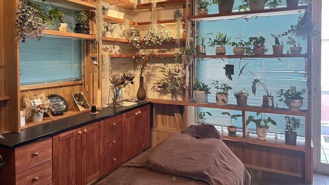 木のぬくもりを感じるおしゃれな雑貨屋さんみたいな居心地よい癒しの空間♪1ベッドのプライベートサロンなので心からリラックスして治療を受けられるとあたたかい雰囲気が好評です