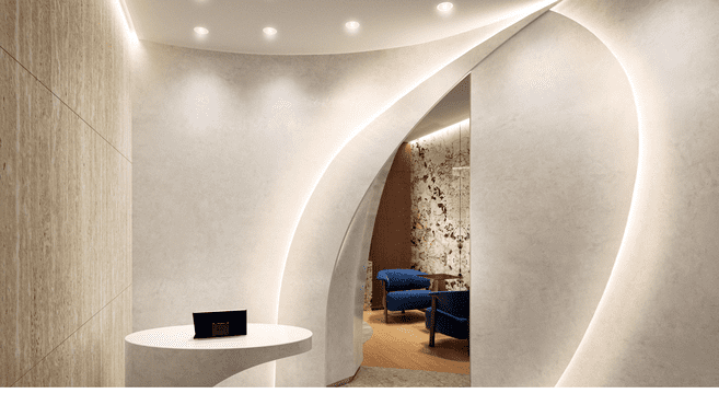 曲線美をイメージした落ち着いたラグジュアリー空間♪高級なホテルのラウンジでくつろぐかのような、広い個室が魅力のプライベートサロンになる予定です♪