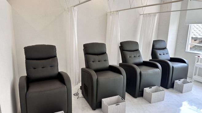 ふかふかのリクライニングチェアで、まるでサロンにいる時間が“ご褒美タイム”のように感じられる人気のスペースです。