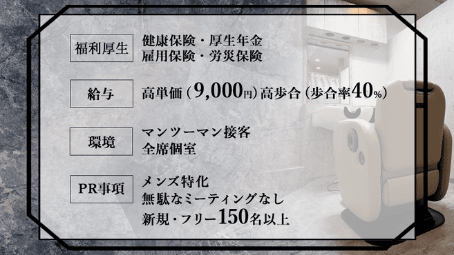 給与:高単価(9,000円)高歩合(歩合率40%)