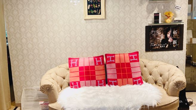 ふんわりとしたファーが敷かれたソファは、施術前の緊張をすっとほぐしてくれるような柔らかな座り心地。