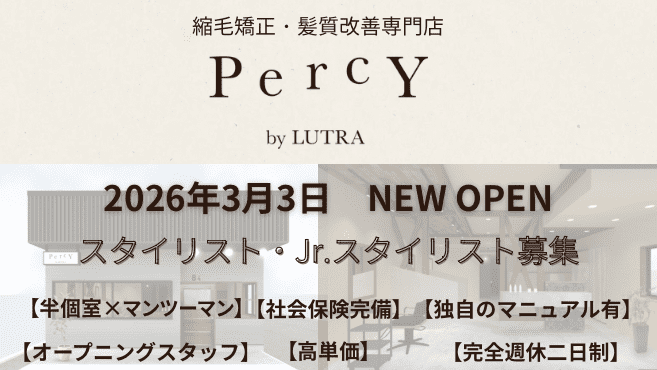 2026年3月3日、鯖江市に髪質改善・縮毛矯正専門店「PercY by LUTRA」がオープンします。