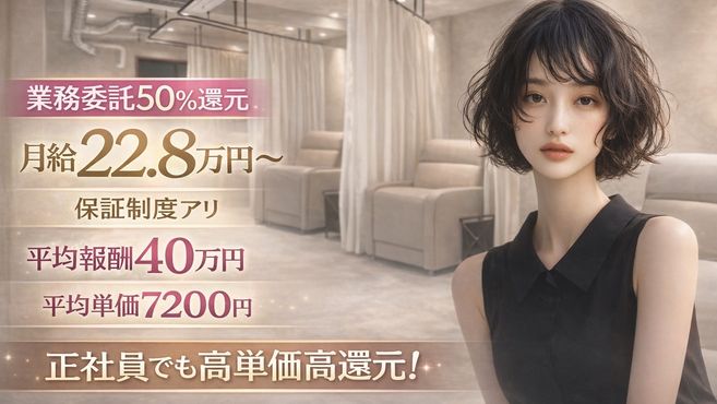 当店はマンツーマン施術を大切にし、一人ひとりのお客様としっかり向き合えるスタイル。丁寧な接客と安定したリピート率が特徴で、安心して長く働ける環境づくりにも力を入れています。安定した時間とお給料も魅力のひとつです◎