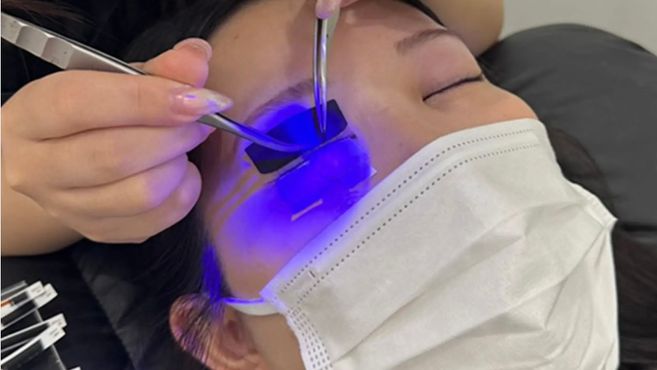 通常のグルーを使ったマツエクに比べ、LEDマツエクは技術の習得が早く、施術もスムーズ。