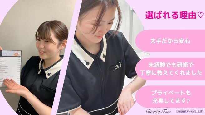 技術レベルに合わせて、ビューティーフェイススクールで初級~エキスパートまで随時スキルアップ研修を受ることができ、安心して店舗で勤務できます♪